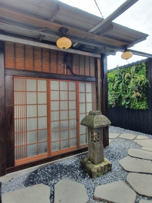 店內裡裡外外的每一扇門片、每一個木櫃、石燈、小地藏、童地藏等皆是店家從日本運至台灣,且各有著百餘年的歷史。 如門片皆是來自日本九州不同地區的百年老宅,費時許久蒐集拼湊而成; 吧台是兩張日本九州佐賀縣大正時期的櫃子再加上三張九州長崎縣昭和時期的櫃子所組成。 後院的石燈來頭也不小,日本佐賀縣明治時期,也有著百餘年歲月。