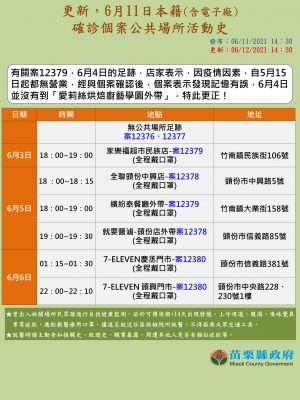 今日新增2名COVID-19確診個案,案12741為40多歲男性,為竹南科技廠員工,同工作區域有確診個案。案12835為30多歲男性,在家人案11490確診後(7日公布,竹南科技廠員工),被匡列居家隔離,為家庭群聚感染。